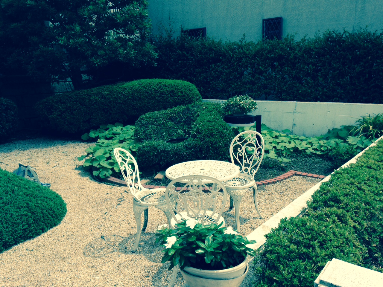 こちらはとある海が近い高級住宅地にある邸宅から眺めるお庭です。
